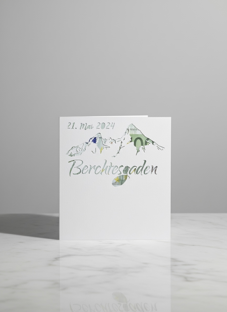 Geldgeschenkkarte "Alpine Liebe" – 3D-Herzen & Wunsch-Feinschnitt