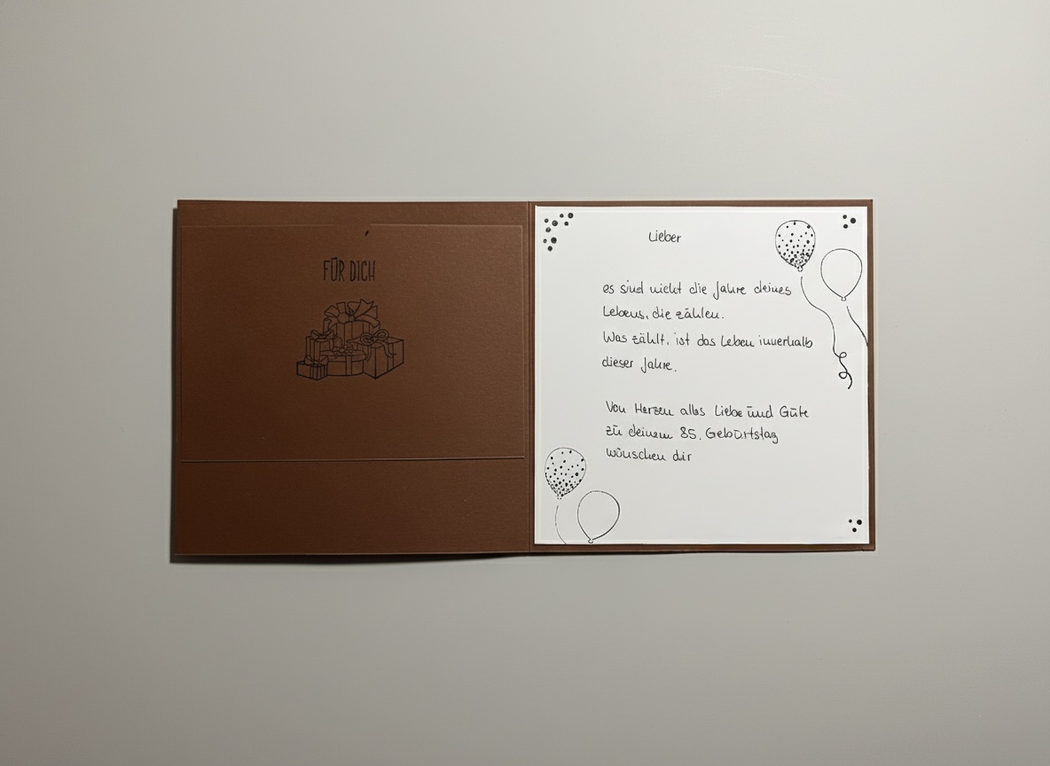 Hinweis zur Herstellung & Lieferung: Jedes Produkt wird erst nach deiner Bestellung individuell in Handarbeit für dich gefertigt. Da meine Karten als eigenständige Designobjekte wirken sollen, erfolgt die Lieferung bewusst ohne Umschlag. So kommt das Layout direkt zur Geltung.