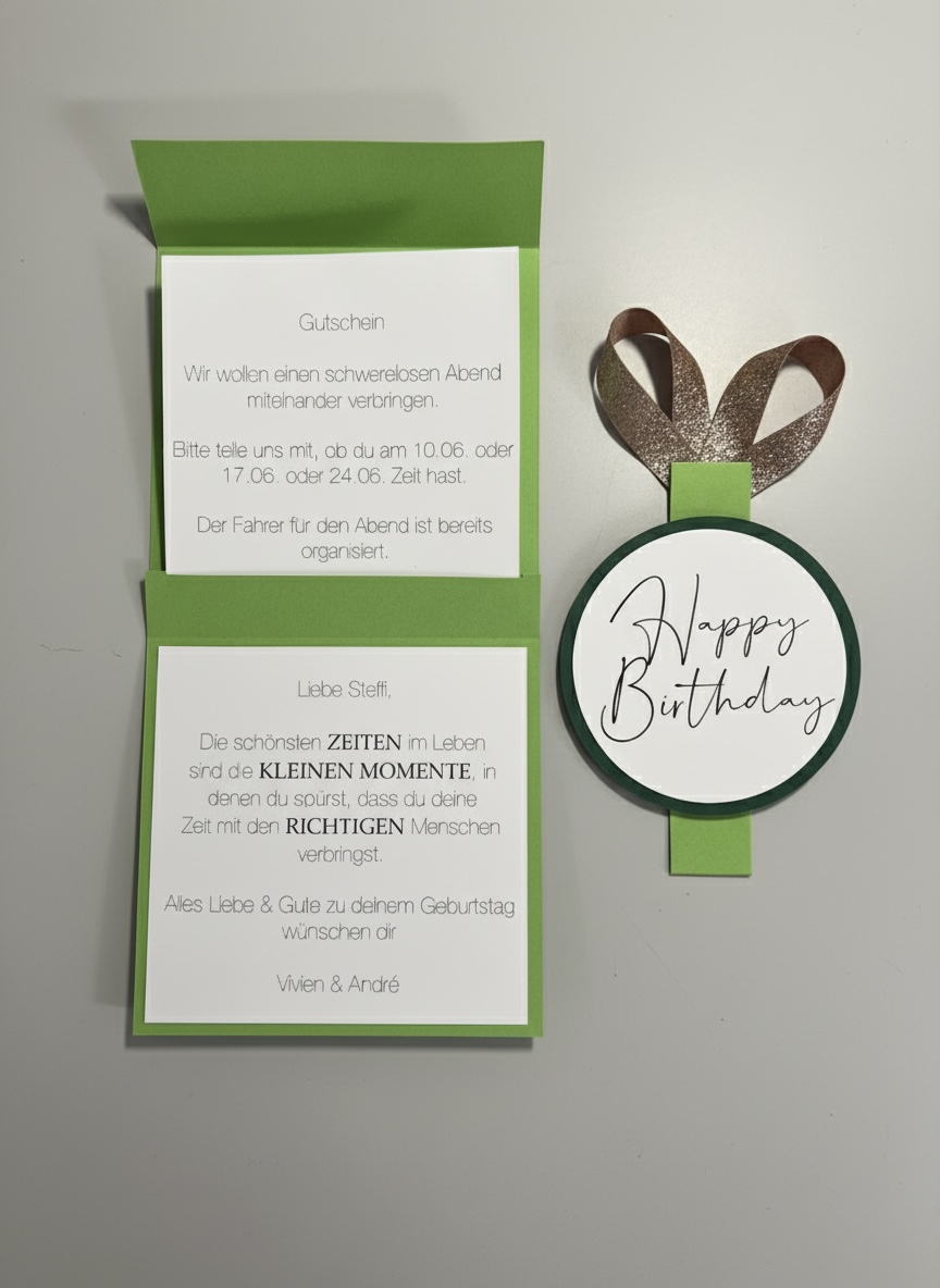Im Inneren befindet sich ein zentrales Einsteckfach, in das du eine Gutscheinkarte oder einen persönlichen, selbstgeschriebenen Gutschein einschieben kannst. Die Karte lässt sich vollständig aufklappen und bietet so zusätzlich viel Platz für deine persönlichen Glückwünsche.
