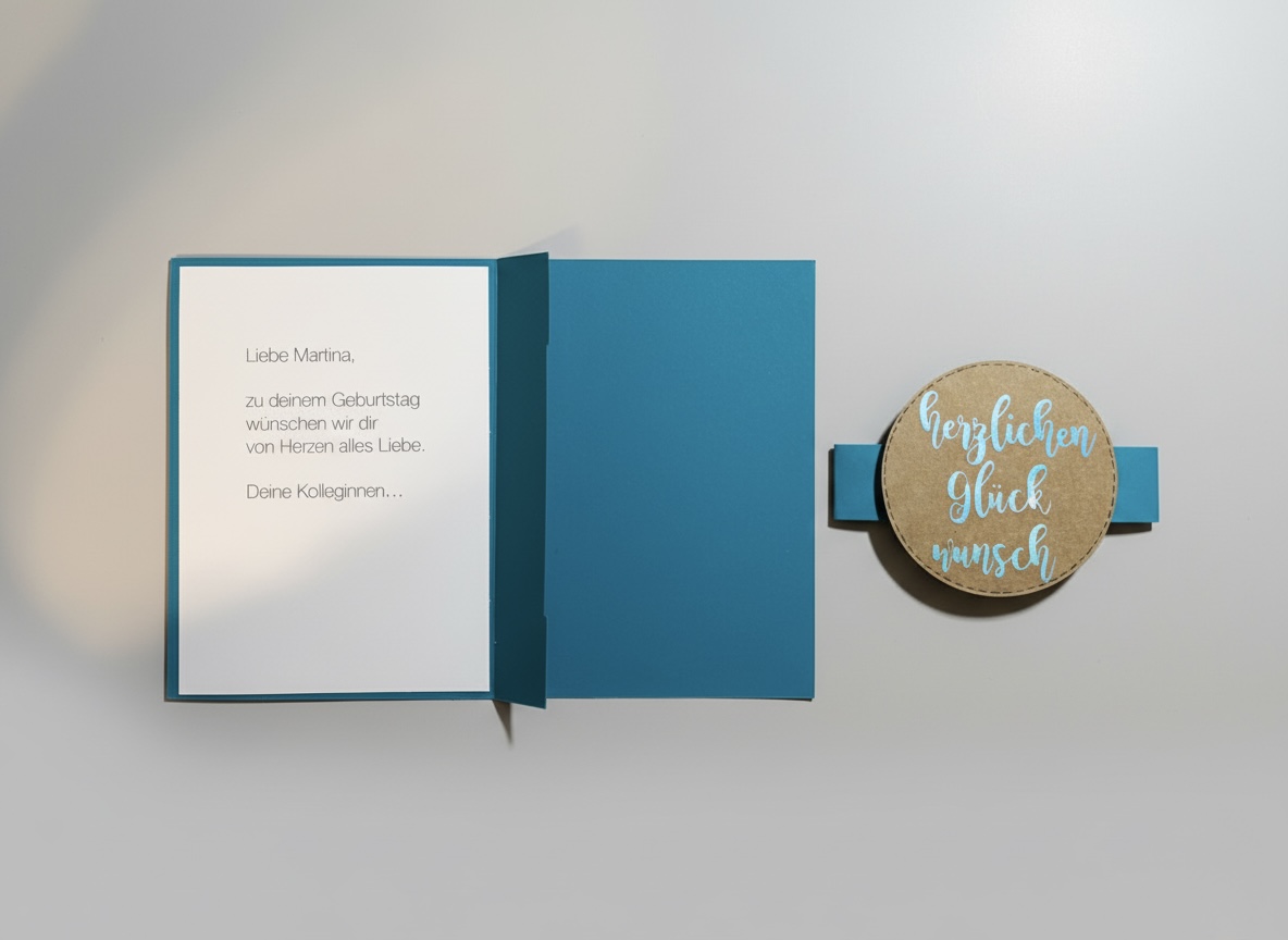 Jedes Produkt wird erst nach deiner Bestellung individuell in Handarbeit gefertigt. Da ich mit wechselnden Designpapieren arbeite, wähle bitte dein Lieblingsmuster in den Optionen aus. Die Lieferung erfolgt bewusst ohne Umschlag, da die Banderole bereits als dekorativer Verschluss dient.