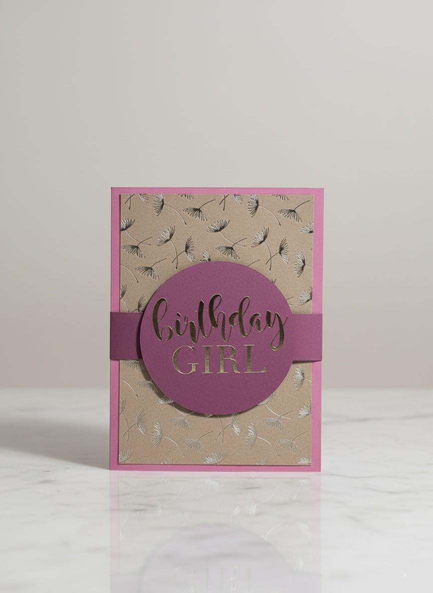 Design: Klappkarte mit dekorativem Schieber (Banderole) als Verschluss.